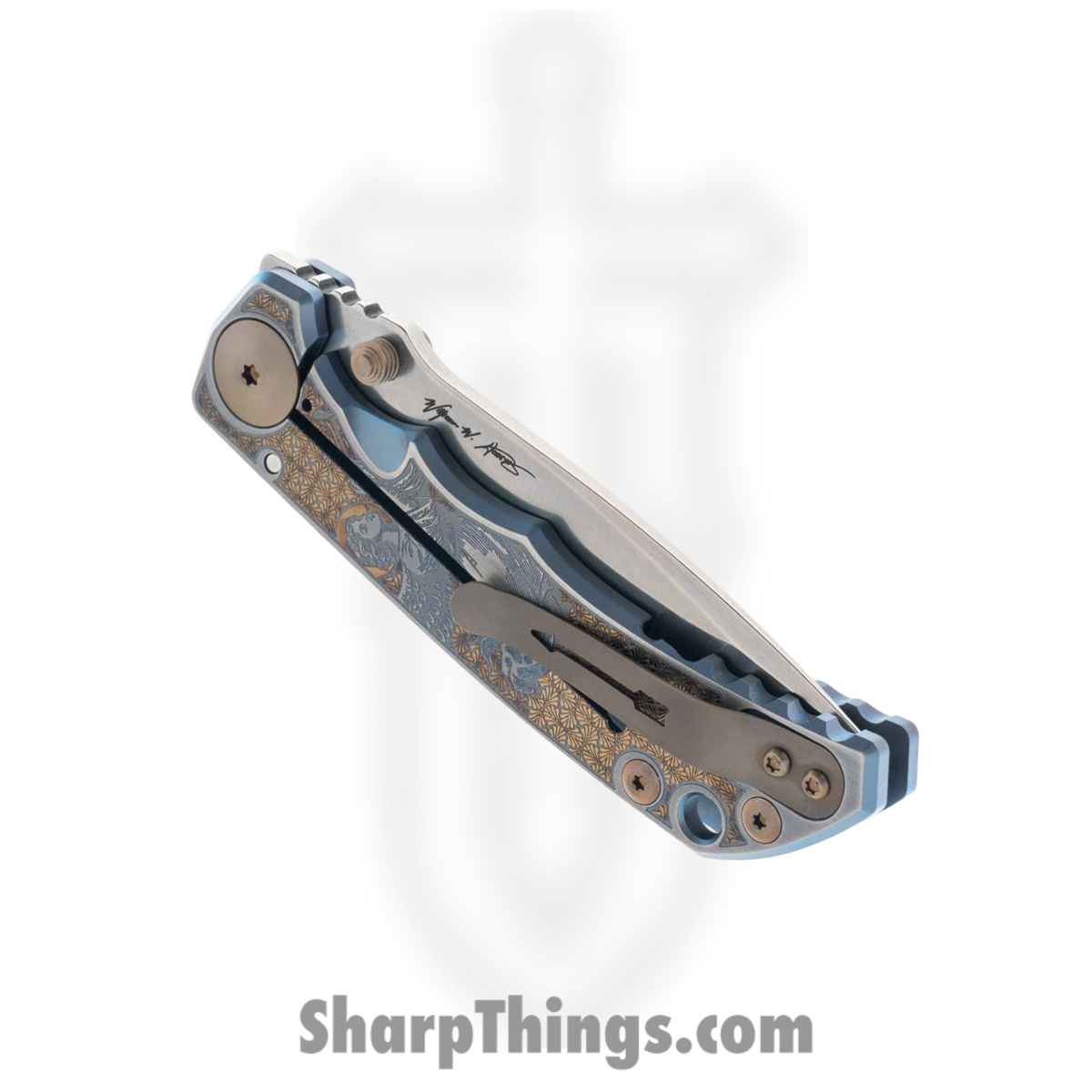 The Spartan Blades Harsey Folder “Angel” Edition (Model SF5ANGL) stands as a refined fusion of elite craftsmanship and expressive artistry. Designed by the renowned knife-maker William W. Harsey Jr. in collaboration with Spartan Blades, this limited-edition frame-lock folding knife channels both the protective symbolism of angelic iconography and the high-performance material engineering expected of a premium tactical-art piece. The SF5ANGL is built for the collector who demands both technical excellence and meaningful design. From the moment you draw the knife, the Angel Edition makes its purpose clear—not just as a tool, but as a legacy piece. The handle is crafted from anodised 6AL-4V titanium, deeply engraved with stylised angelic wings and figures whose presence evokes guardianship, resilience and transcendence. That design wraps around the ergonomic frame-lock architecture, combining everyday usability with symbolic strength. The blade itself is forged from CPM MagnaCut stainless steel, an alloy that offers extraordinary edge retention, toughness and corrosion resistance. According to published sources the blade hardness rate clocks in around 61–63 HRC. Whether you carry the SF5ANGL for performance or appreciation, the balance, materials and finishing are exceptional. At a listed weight of approximately 5.9 oz and a total length of about 9.0″, the knife strikes an accessible middle ground between utility and presence. The dual thumb-stud opening, reversible tip-up pocket clip and precise pivot assembly make it a practical carry choice, while the deeply engraved handle art elevates it to a display-worthy piece.