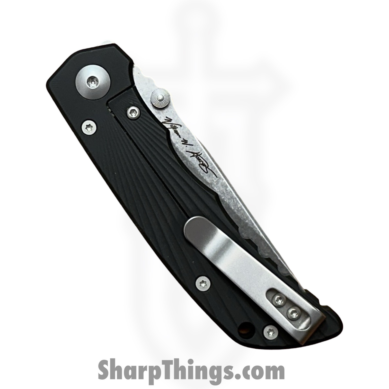Housed in a meticulously contoured 7075 aluminum frame, the handle features a black Cerakote-coated Starburst pattern—a signature design detail that enhances grip while lending an unmistakable visual impact. The frame also incorporates an integrated steel lock bar insert, ensuring rock-solid lockup and long-term durability.