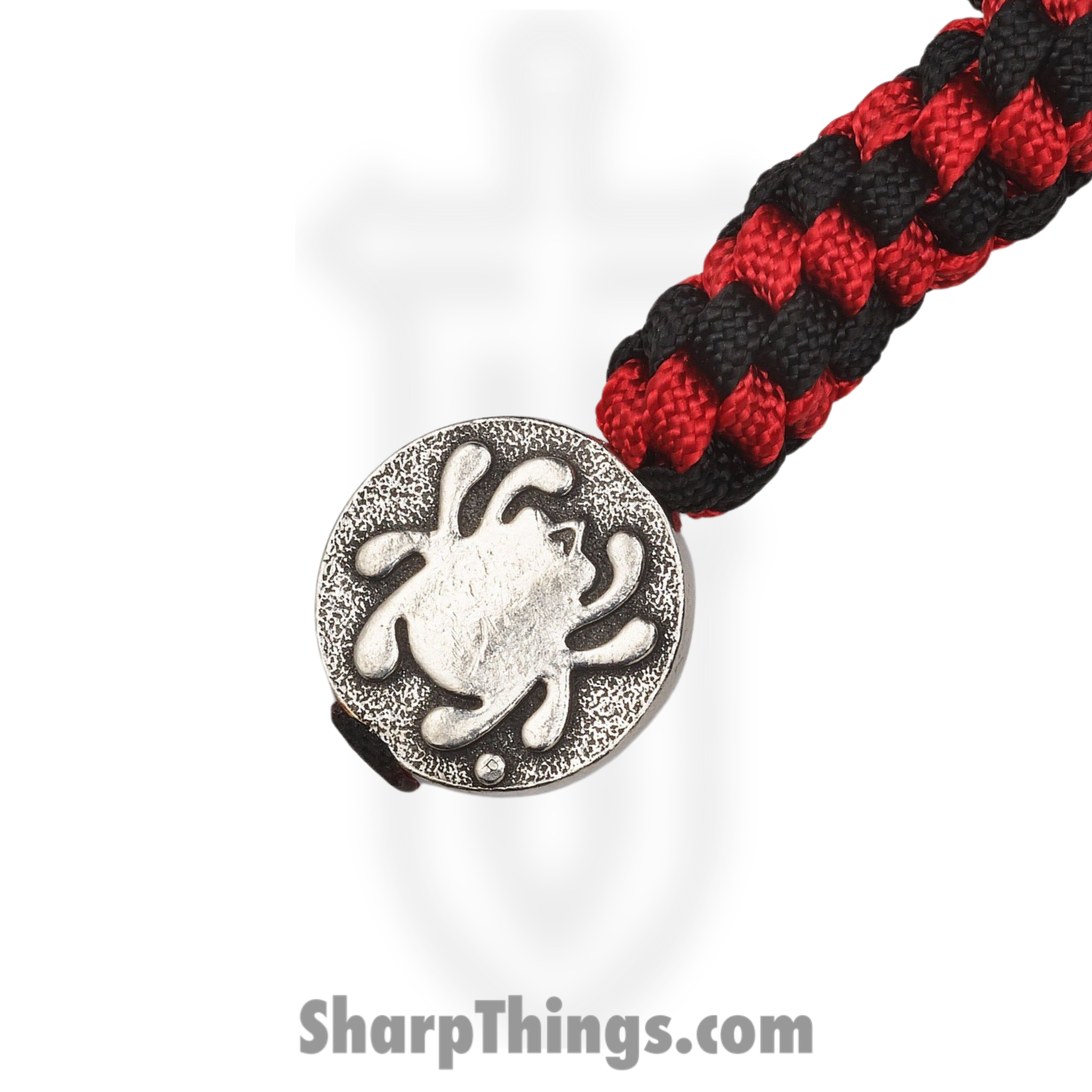 Enhance the aesthetic appeal of your Spyderco knife with the SCBEAD5LY Flat Oval Bead. This exquisitely crafted pewter bead boasts a 0.92″ (24mm) diameter, featuring a raised “bug” logo on both sides for a distinctive and stylish touch. Paired with a meticulously hand-braided black-and-red paracord lanyard, this accessory not only adds flair to your favorite knife but also serves as an excellent fob for your keychain.
