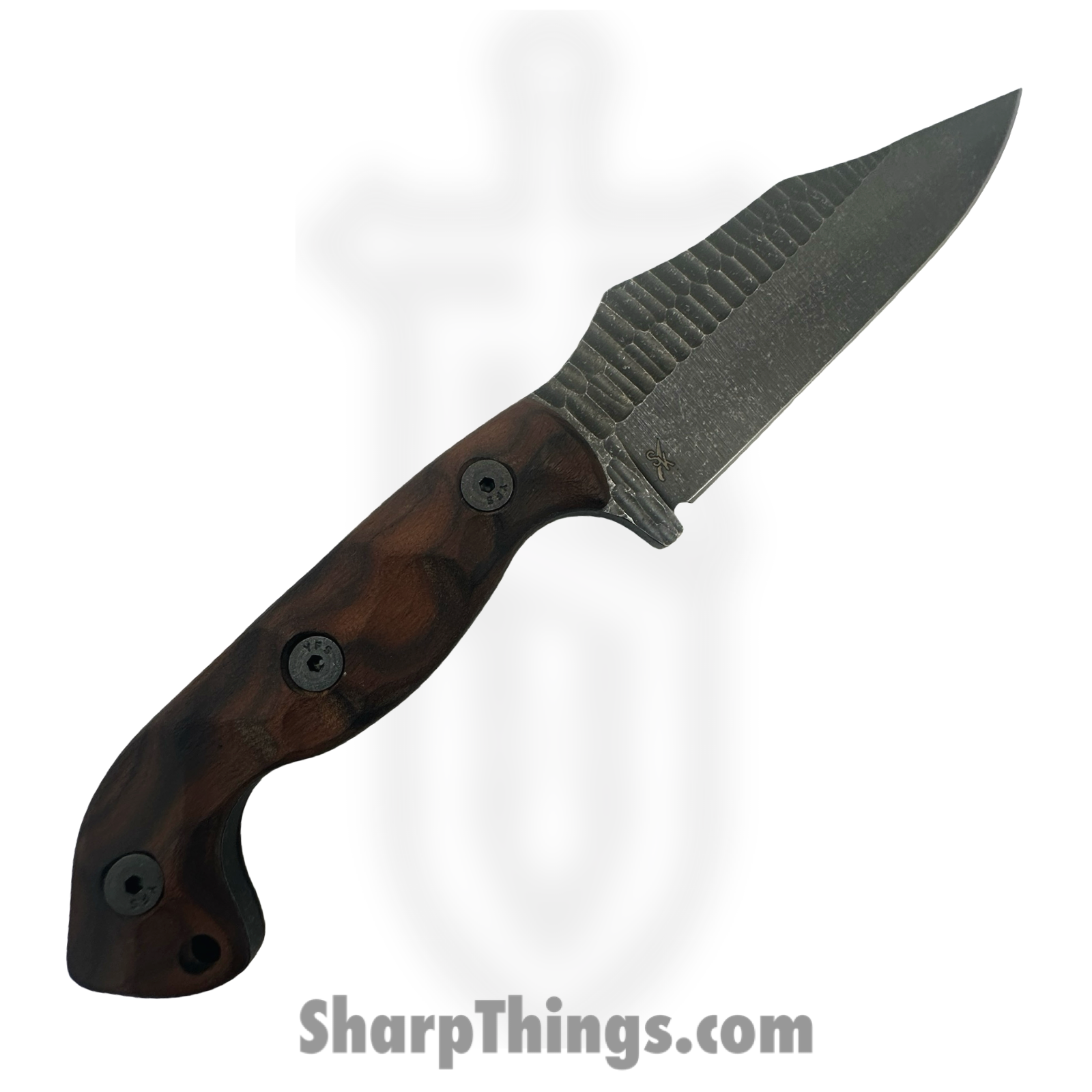Stroup Knives – TU1-W – Tactical Use – Fixed Blade Knife – 1095 HC Acid Wash Clip Point – Honduran Rosewood – Brown
