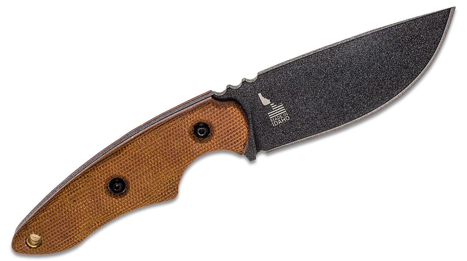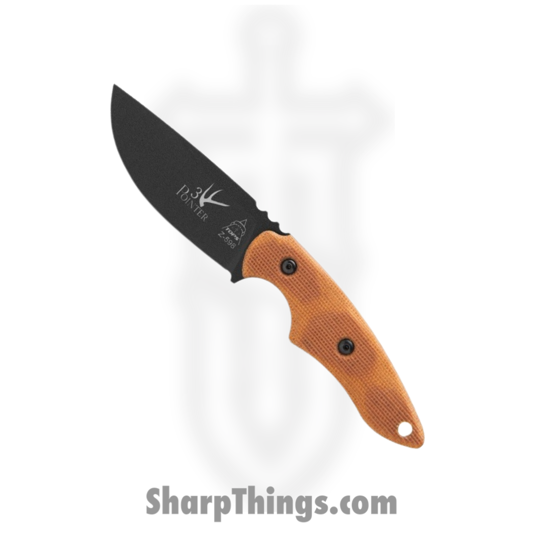 3 Pointer – Fixed Blade Knife – 1095 Black Traction Coating Full Tang – Canvas Micarta – Tan