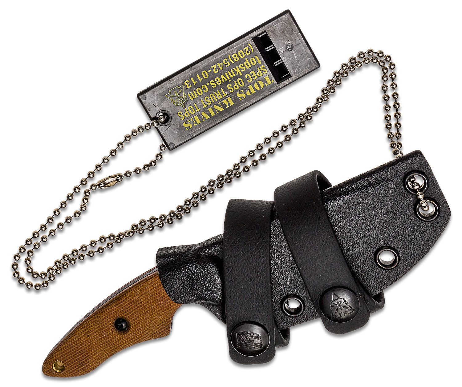 The Tops TP3PR02, also known as the 3 Pointer, is another exceptional knife designed by Leo Espinoza. This versatile knife is ideal for everyday carry (EDC), fishing, camping, and hunting. Leo’s focus on providing options is evident in this model, offering various choices for both carry and personalization. With beta loop straps and a neck chain included, the 3 Pointer can be worn in multiple ways. Personalization options include black canvas or tan canvas handles or a skeletonized design. The 3 Pointer is designed to handle various tasks, from processing small game, fish, and fowl to handling a small buck with ease. Its size and design make it suitable for a wide range of uses, replacing your folder for EDC due to its lightweight, functional, and easy-to-carry nature.