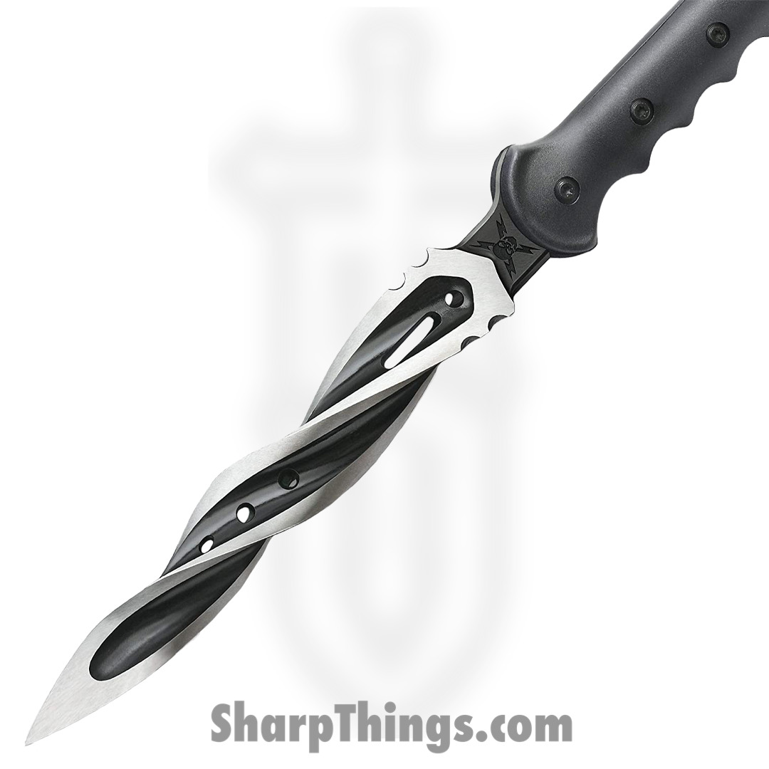 48.88″ overall. 9″ two-tone finish 2Cr13 stainless blade. Black glass filled nylon handle. Three spiraling cutting edges, coming down to an incredibly sharp piercing point. Includes custom sheath. Boxed.