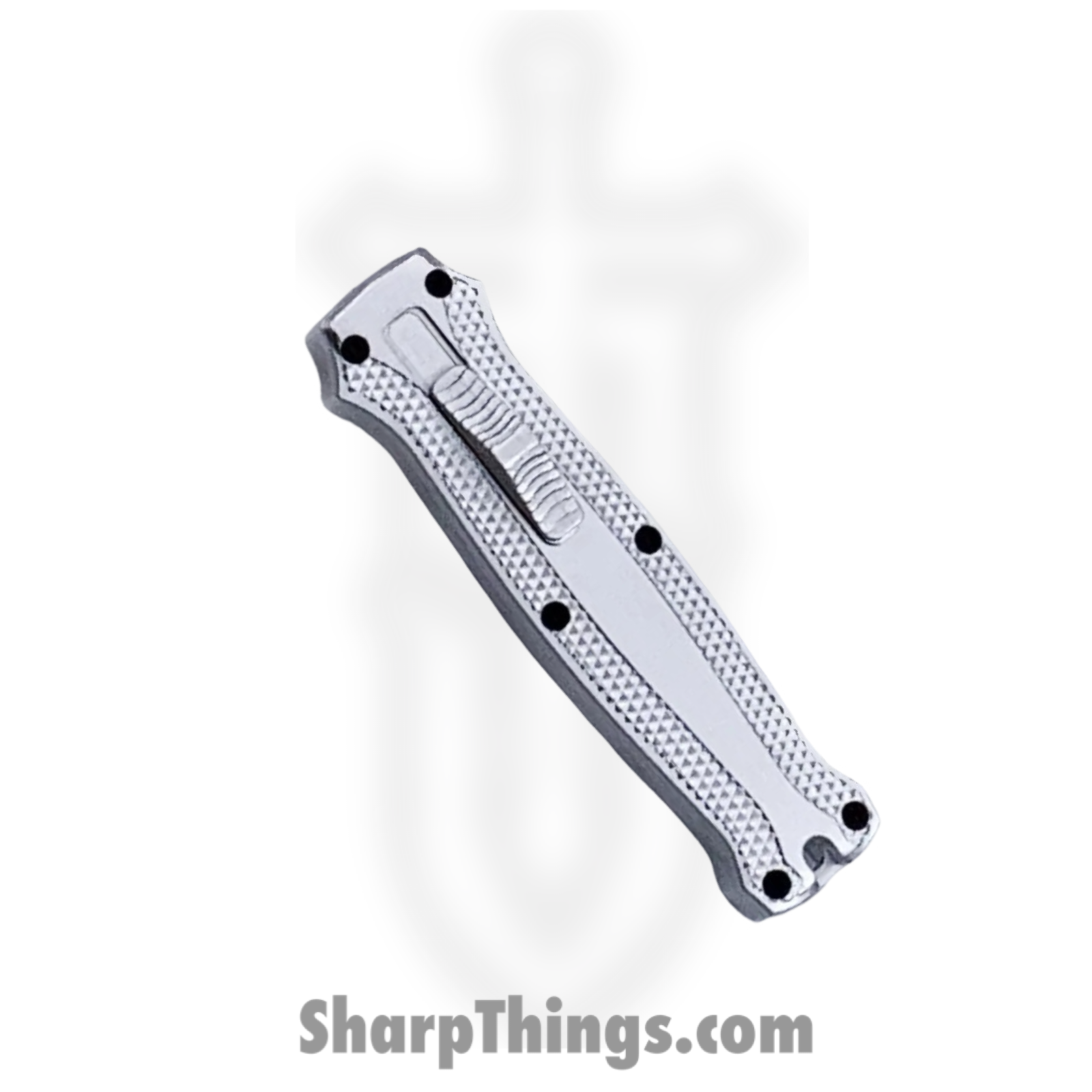 A lightweight 1.5 oz OTF automatic knife for everyday use. The handle is made from lightweight durable aluminum. This Knife is 4.85 inches long with a 1.85 Inch stainless steel blade, and 3 inch brilliant anodized aluminum handle. Super quick, reliable OTF action!