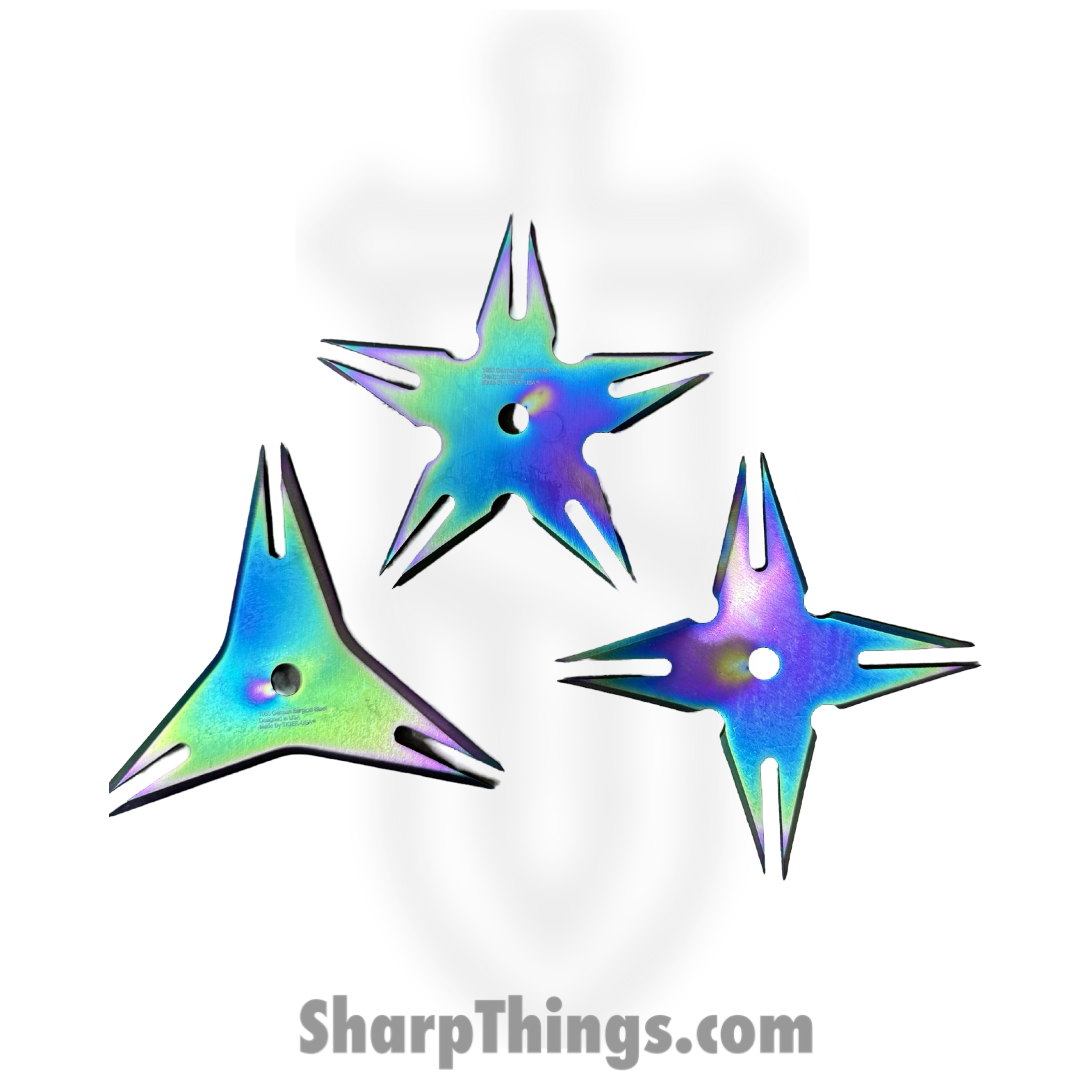 3 Piece Throwing Stars – Fixed Blade Knife – 1045 Surgical Steel – Rainbow