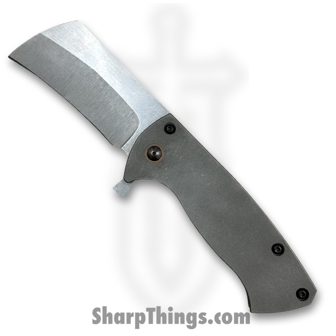 Leviathan Cleaver – Folding Knife – Stonewashed 154CM Cleaver Blade – CF Clip- Ti Scales – Gray