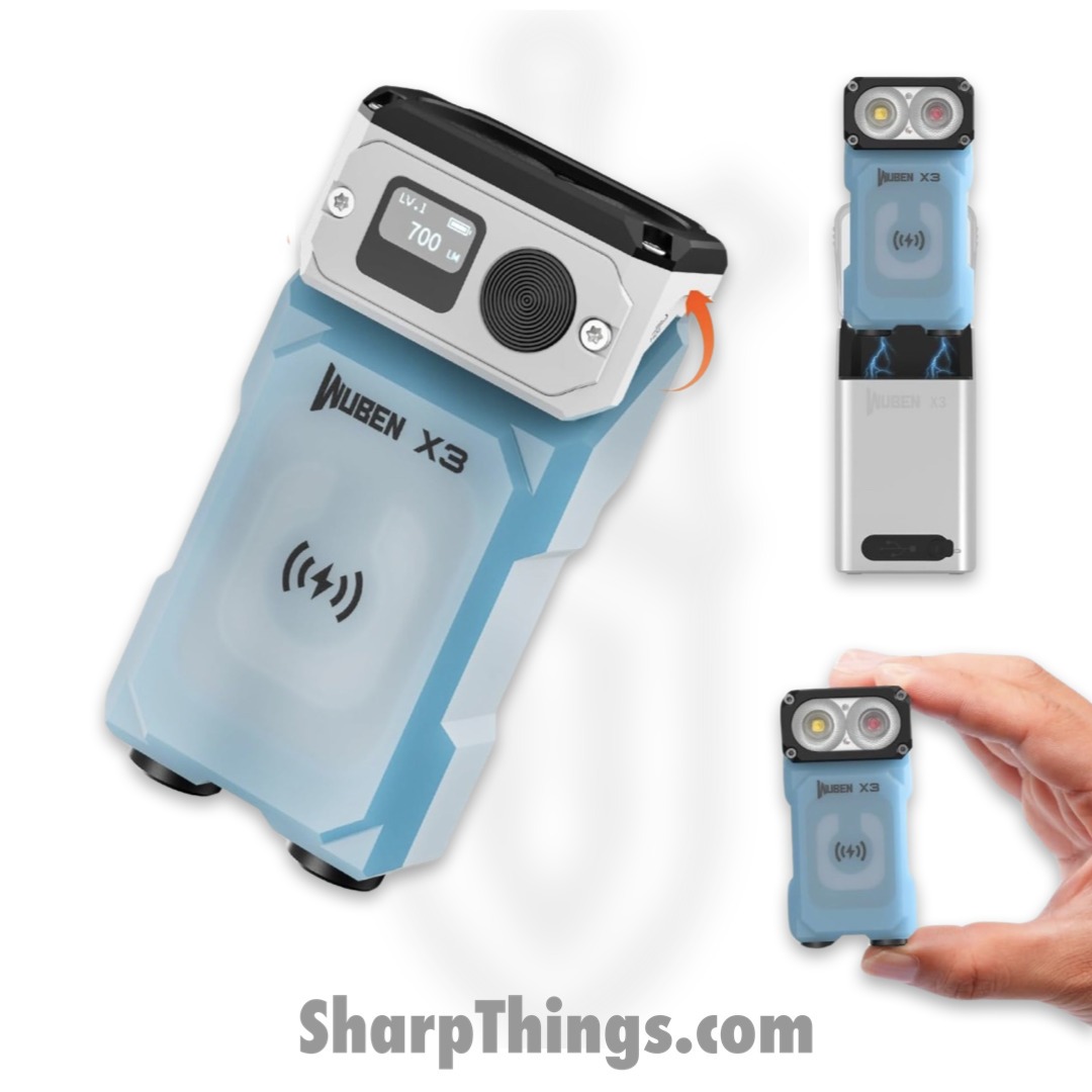 Wuben – WX3CHBX-BLU – Wuben X3 Owl EDC Flashlight and 3000mah Charging Box – Blue